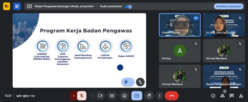 - KOPMA BS UPI (Koperasi Mahasiswa Bumi Siliwangi Universitas Pendidikan Indonesia), yang telah dilaksanakan pada tanggal, 04 Oktober 2024 secara online melalui Google Meet