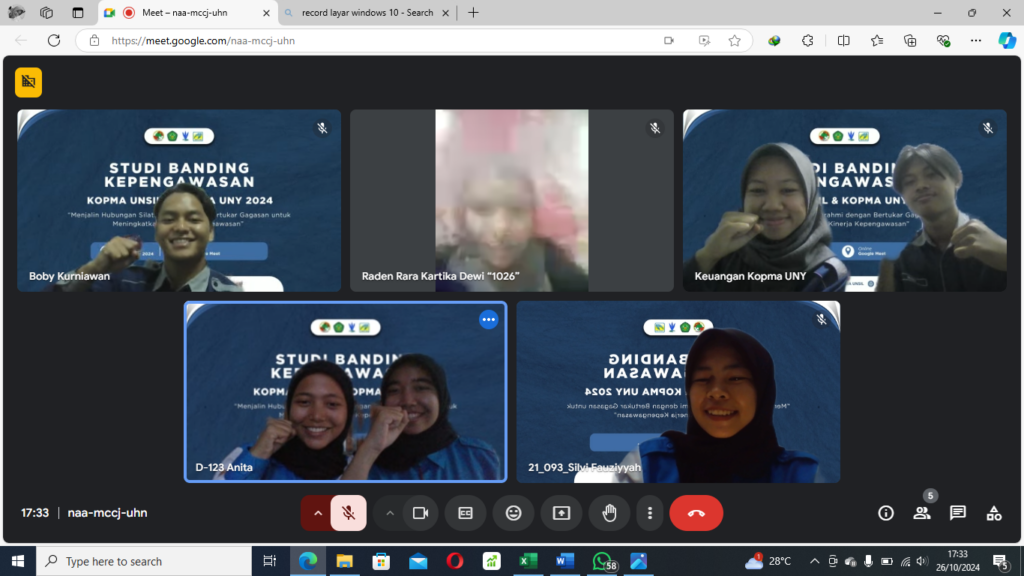 - KOPMA UNY (Koperasi Mahasiswa Universitas Negeri Yogyakarta), yang telah dilaksanakan pada tanggal, 26 Oktober 2024 dilakukan secara online melalui Google Meet