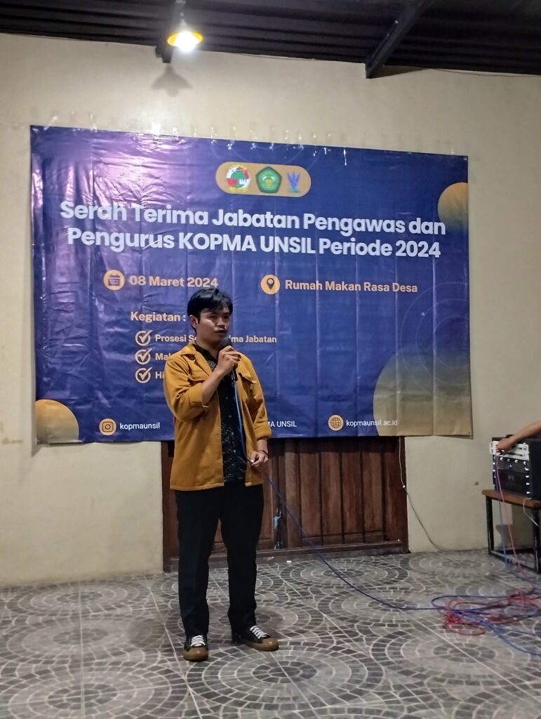 Kegiatan dimulai dengan sambutan dari Pembina KOPMA UNSIL, Ketua Umum dan Ketua Pengawas Periode 2023 dan Ketua Umum dan Ketua Pengawas Terpilih. Selanjutnya rangkaian acara dilanjutkan dengan penyerahan jabatan secara simbolis. Acara diakhiri dengan kegiatan makan bersama dan hiburan.
